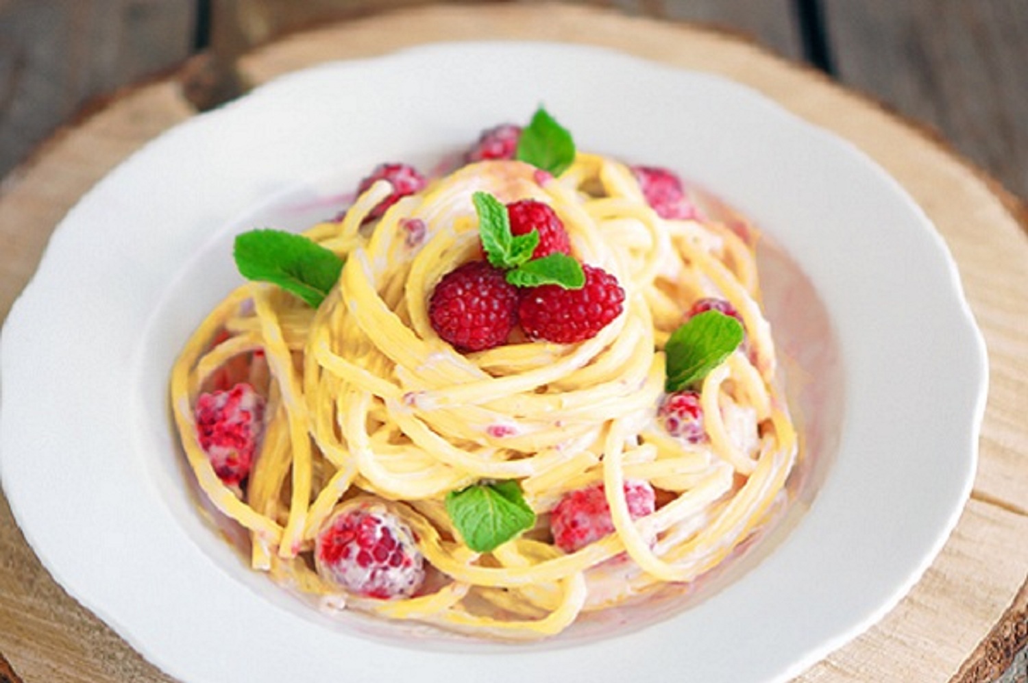 Признайтесь, первая мысль, которая посетила вас от этой фотографии — «Это же невкусно» или «Это же слишком странно». Но давайте вспомним детство — все мы ели сладкие «каши с вермишелью» и ничего, было вкусно!)