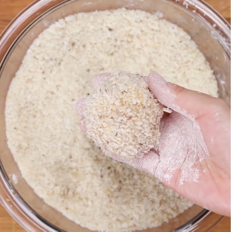 Макаем в муку, в яйцо, а затем в панировочные сухари