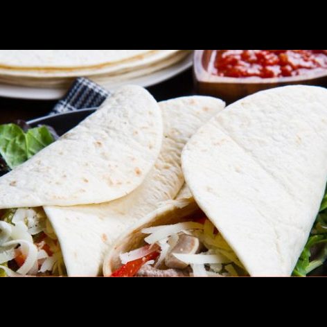 Ингредиенты: на полкило говядины – две тортильи (здесь и далее вместо них можно взять лаваш), луковица, болгарский перец, пара помидоров, половинка чили, по столовой ложке соевого соуса и винного уксуса, 3 столовых ложки растительного масла, 100 мл лимонного сока, по чайной ложечке кумина и сахара, зелень, соль.Мясо режем на тонкие полоски, укладываем в посудину, солим-перчим, бросаем туда измельченный чеснок и все это заливаем лимонным соком. Нарезанные же лук и перец заливаем смесью соуса и уксуса. И то, и другое оставляем помариноваться на часик, мясо можно помучить и два. Теперь поджариваем его минут 5, после чего присоединяем к нему нарезанные помидоры и перец чили, сдабриваем кумином и тушим еще минут 10. Когда остынет, выкладываем в лепешки по порции мяса и овощей, заворачиваем, украшаем зеленью – и уплетаем с чувством глубокого удовлетворения.