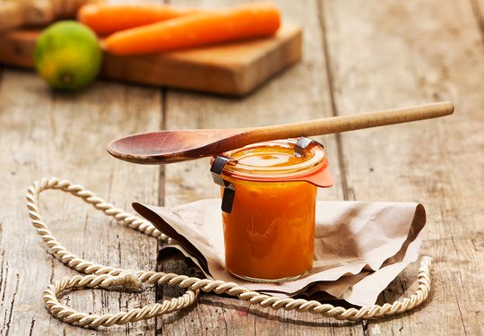 Оригинальной заготовкой на зиму станет рецепт варенья из моркови. Нам понадобится по 1 кг моркови и лимонов с тонкой кожурой. Цитрусы целиком опускаем в кипящую воду и варим 5 минут. Затем нарезаем их с кожурой, выбираем все косточки и пропускаем через мясорубку. Точно так же измельчаем сырую морковь. Соединяем ингредиенты в кастрюле с толстыми стенками, засыпаем 2 кг сахара и варим на среднем огне 40 минут. Не забывайте перемешивать кипящую массу, а в самом конце добавьте щепотку ванилина. Остается разложить варенье по банкам и закатать. Можете устроить семейное состязание, кто первый угадает, из чего сделано это лакомство.