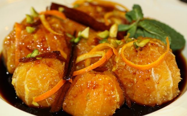 Срезаем с 2 мандаринов цедру и нарезаем ее тонкими полосками.На маленьком огне в небольшой кастрюле растворяем сахар до золотисто-коричневого цвета, а затем снимаем с огня.Аккуратно вливаем в кастрюлю с сахаром 1,25 чашки теплой воды (осторожно: сахар начнет сильно кипеть).Добавляем в кастрюлю палочки корицы и цедру. На медленном огне варим карамель в течение 5 минут.Вливаем апельсиновый ликер.Даем карамели остыть в течение 10 минут и поливаем ею подготовленные мандарины.Накрываем миску с мандаринами пленкой и даем настояться несколько часов (лучше убрать на ночь в холодильник).Фисташки бланшируем в кипящей воде в течение нескольких минут.После того как они просохнут, снимаем с фисташек кожуру и режем на крупные кусочки.Посыпаем измельченными фисташками мандарины в карамели.