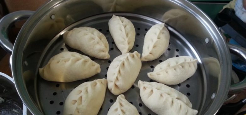 Помести пигоди на предварительно смазанные растительным маслом листы пароварки. Готовь вкусные пирожки 40 минут после закипания воды.