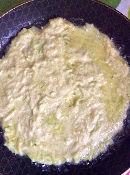 Кабачки натереть на крупной терке, посолить, дать постоять минут 5, сок слегка слить