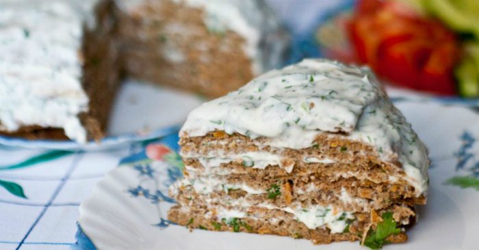 Спасибо, очень вкусный торт, а я добавляю на каждый корж еще и кружочки помидор. Торт получается более остреньким!