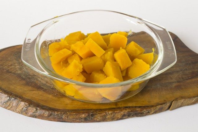 Нарезаем мякоть кубиками с ребром 1,5 сантиметра. Подготавливаем две кастрюли – в одну наливаем кипяток, в другую холодную воду. Кладём кусочки овощей в кипящую воду на 1-2 минуты, шумовкой перекладываем в холодную. Не бросайте в кастрюлю сразу все овощи, бланшируйте небольшими порциями.