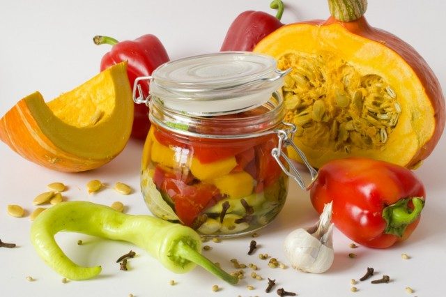 Салат с тыквой и сладким перцем в ароматном маринаде, приправленном корицей, кориандром и чесноком, – хрустящее овощное ассорти, которое лучше всего заготавливать в сентябре – октябре.