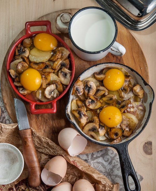 Яичница, запеченная с картофелем и сливками.