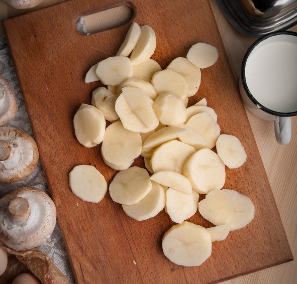 — Картофель очистить и нарезать ломтиками либо кружками.