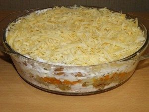 Ананасы подготовить проще простого: слить сироп и нарезать, если у вас кружочки (можно купить уже порезанные ананасы). Яйца отварить до полной готовности и натереть на крупной терке, как и сыр. Выкладываем салат слоями, а каждый слой обильно нужно смазывать майонезом. Еще можно приготовитьсалат с копченой курицей и черносливом.