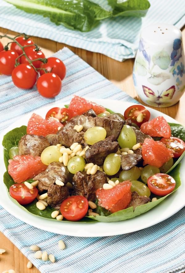 Салат из куриной печенки с грейпфрутом