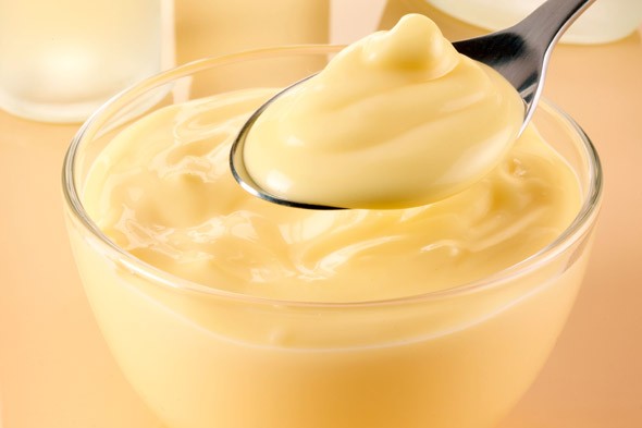 Разотрите яичные желтки с сахаром, ванилью и мукой до однородности. Вскипятите молоко и введите в массу тонкой стрункой. Перемешайте. Поставьте смесь на огонь и варите до загустения.