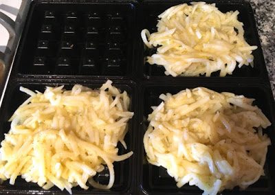 Такое блюдо может называться по разному, но суть одна: натертый на крупную терку картофель с минимальными добавками (соль, перец, яйцо, иногда лук и/или чеснок) готовится в вафельнице для больших мягких вафель бельгийского типа.