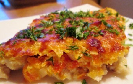 Форму для запекания смазываем растительным маслом, выкладываем рыбу, солим, перчим.