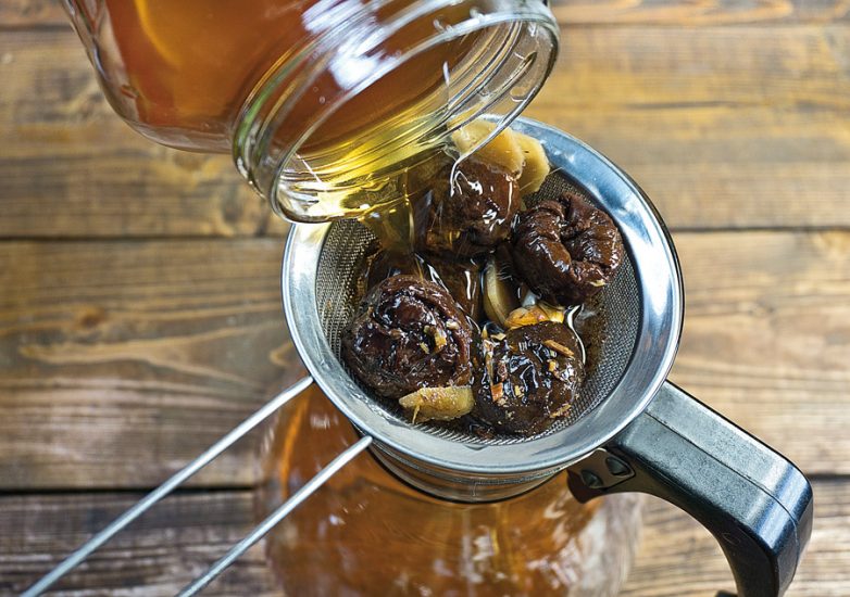 5-6 сушеных ягод чернослива (без косточки), чтобы в будущей настойке довольно ярко ощущался «сахар» подкопчённой коньячной бочки.