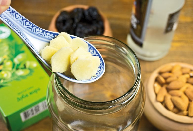 Каких-либо особых подготовительных процедур приготовление настойки не требует. Всего-то делов — произвольно нарезать оговоренное количество очищенного имбирного корня и слегка раздавить орешки миндаля, чтобы они лучше передали аромат в настойку.