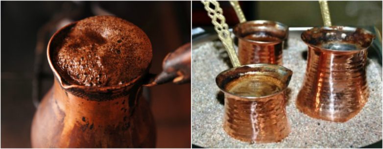 Именно турки придумали особый способ варки кофе, который нам известен как «кофе по-восточному» или «кофе по-турецки». В идеале кофе по-турецки готовят на раскаленном песке, но в домашних условиях можно обойтись и обычной плитой. Секрет заключается в том, чтобы несколько раз нагреть напиток и вовремя убрать с огня.
