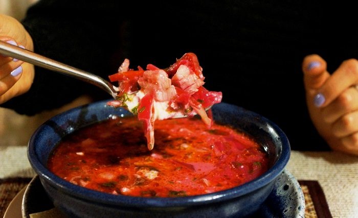 Секрет вкусного борща прост. Очищенную свеклу вместе с мясом положите в воду. Варите овощ целиком в бульоне. Перед концом варки натрите свеклу на терке и верните ее в готовый борщ. Дайте борщу закипеть и выключите.