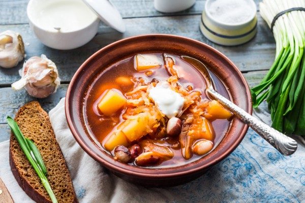 7. Подавать борщ со сметаной и черным хлебом.