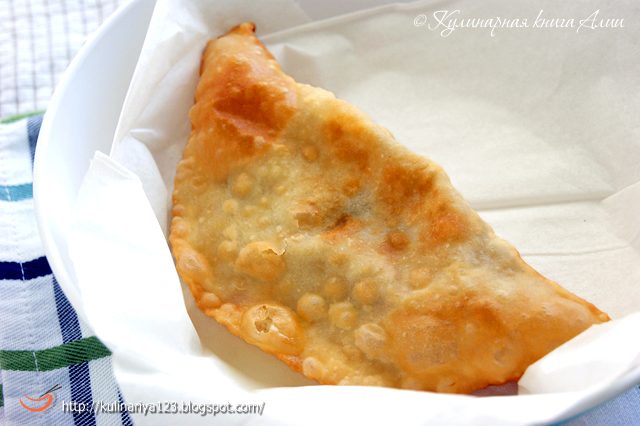 Сформировать чебурек, края, чтобы не вытек сок, прокатать скалкой
