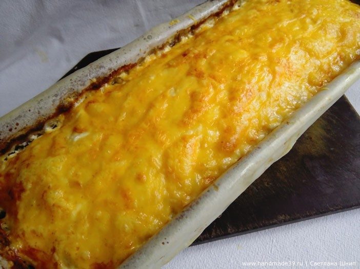 Достаём форму и посыпаем тёртым сыром.