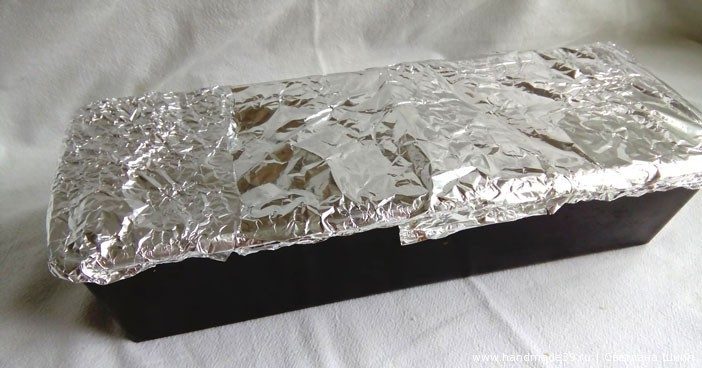 Застелить форму пергаментной бумагой, смазать форму. У меня это «кирпичик» 10 см на 30 см.