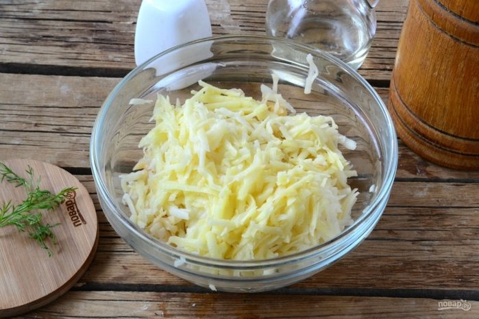 Картофель натрите на крупной терке.