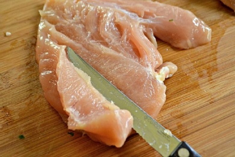 Сделай несколько небольших надрезов вдоль куриной грудки.