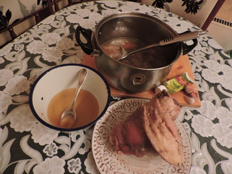 … делали рульку по немецкому рецепту с долгим отвариванием и последующим запеканием в медовой глазури, вкуснота получилась невыразимая!