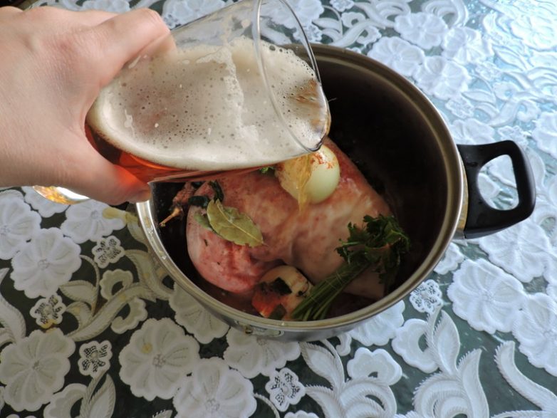 От автора: «Очень давно хотела приготовить рульку в пиве. Да как то всё не получалось. То саму рульку забуду купить, то за пивом лень идти, то чего то не хватает… Но вот в эти дни пазл сложился.»