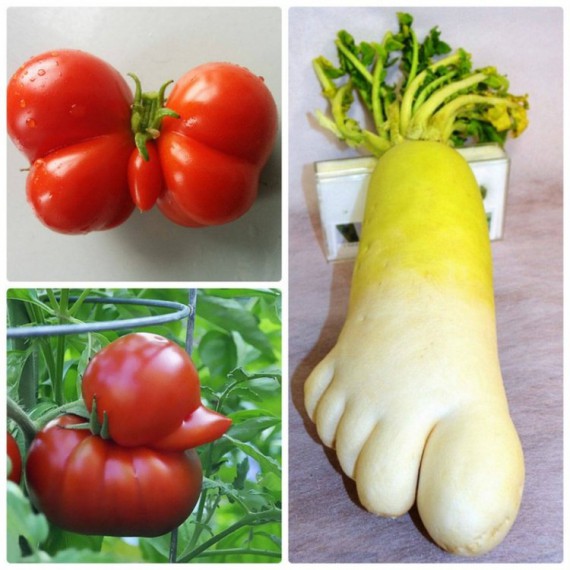 Порой овощи и фрукты могут естественным способом принять довольно необычную форму, которая напоминает нам различные предметы, животных или людей.
