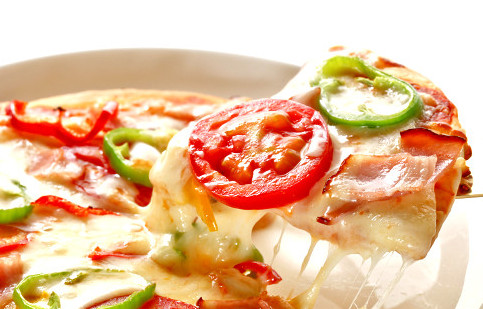 Ингредиенты: 9 столовых ложек муки, 4 столовых ложек сметаны, пара яиц, 300 г твердого сыра, по кусочку колбасы и ветчины, помидор, перец, можно маслины, зелень. Для толерантных – майонез ;)