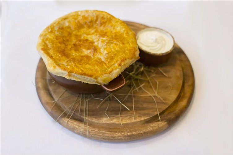 Щи из говядины в горшочке, запеченные с крышкой из слоеного теста