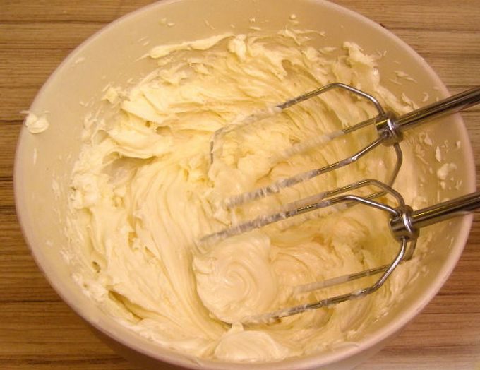 Сперва размягченное сливочное масло необходимо взбить со сгущенным молоком. Затем, продолжая взбивать, постепенно добавить яичные желтки. Для ароматизации добавить ванилин или другую пряность, либо 30-50 грамм ликера.