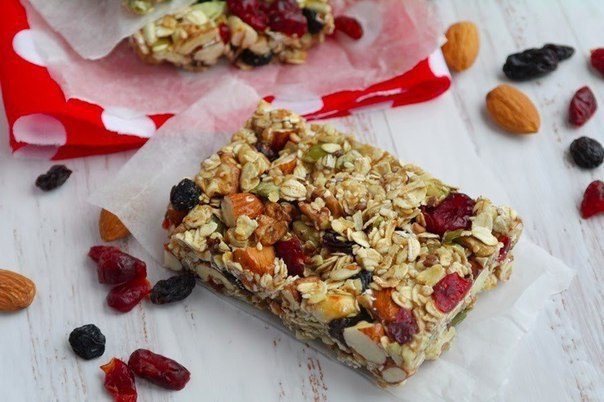 1. На противень, застеленный пекарской бумагой, поместить овсяные хлопья, миндаль, грецкие орехи, тыквенные и подсолнечные семечки, семена льна и кунжут. Миндаль порубить ножом на половинки, грецкие орехи – на крупные кусочки. Рекомендуется подсушить злаки в духовке 7 минут при температуре 180*.