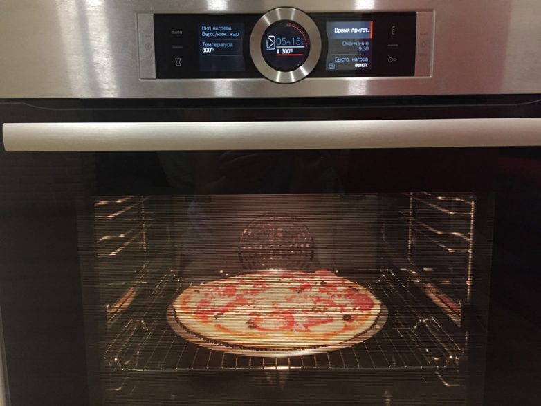 Закидываем пиццу в духовку на 5-6 минут.
