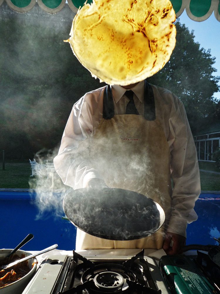 Этот уличный шеф-повар очень виртуозно обращается с блинами. Фотограф поймал момент, когда он стал похожим на персонажа известной картины Рене Магритта17.