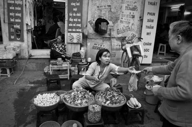 Источник: www.flickr.comТорговля приготовленными овощами в старом квартале Ханоя, Вьетнам. Достаточно дешевый вариант быстро и плотно поесть, особенно если вы любите и умеете торговаться.