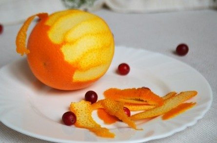Снимите цедру одного апельсина, только желтую кожицу, если обрезать белую часть напиток будет горчить.