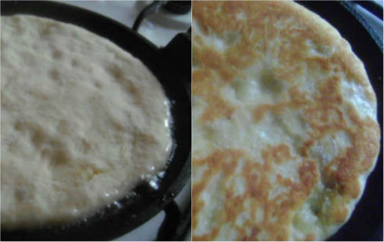 Пока лепешки отдыхают, разогрей сковороду, полив ее слегка растительным маслом. Затем обжарь лепешки с двух сторон под крышкой.