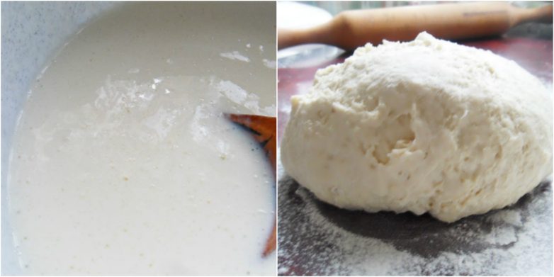 Тесто для лепешек скатай в жгут и нарежь на 8–9 частей. Кусочки раскатай, слегка присыпая мукой, в лепешки толщиной с мизинец. По центру выложи заранее подготовленную начинку, защипни края, прижми и разровняй немного рукой. Снова оставь на 2–3 минуты.