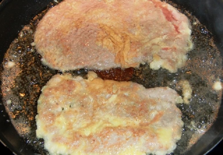 Вылей масло на разогретую сковороду, обмакни отбивные в муку, а затем в яичную смесь. Обжарь биточки с обеих сторон. Готовить мясо нужно до того момента, пока не выделится прозрачный сок. В противном случае ты рискуешь получить сухие отбивные.