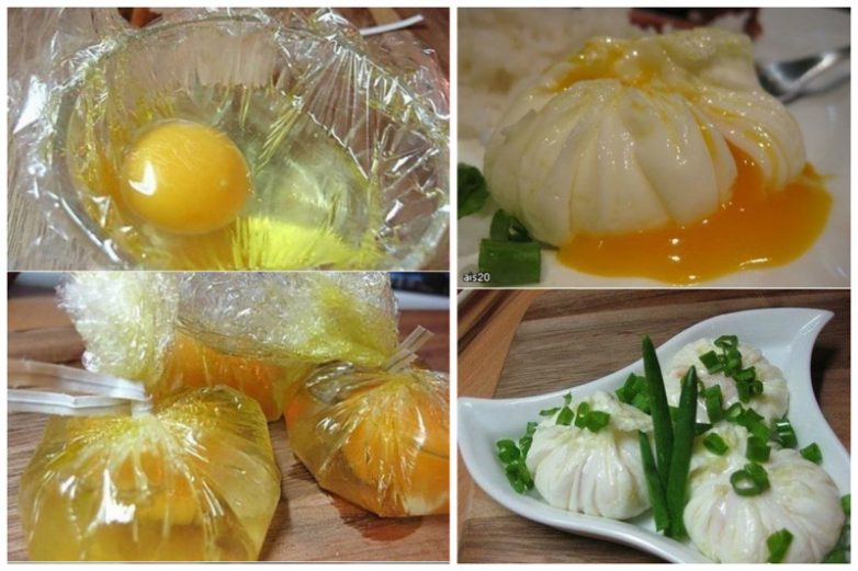 Яйцо пашот, для тех, кто любит яйца всмятку, но не любит их чистить. Заворачиваете яйцо в пленку, варите и аккуратно достаете.