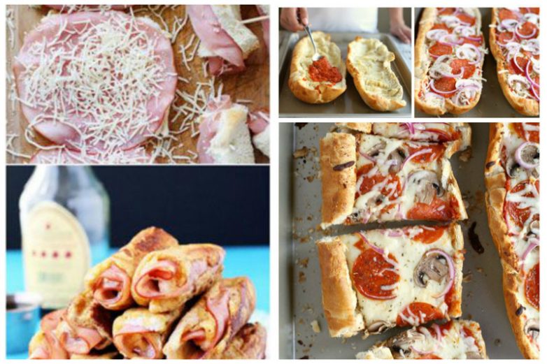 Бутерброды — отличная вещь! Ветчину завернули в кусочки хлеба, завернули, обмакнули в яйцо, обжарили. Есть батон — вытащили сердцевину — засыпали соус, томаты, лук, сыр, зелень — в духовку его