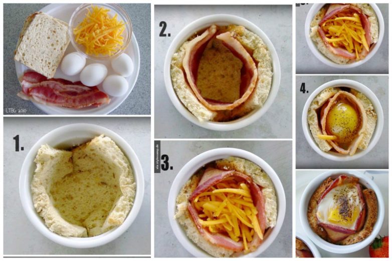 И в кружке — хлеб, ветчина (бекон), яйцо, сыр