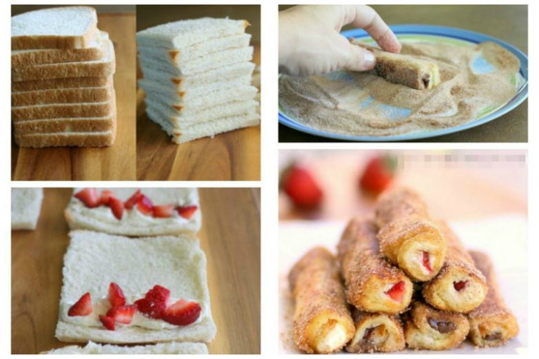 А сладкие завтраки? Вкусно… В хлеб клубнику (любые фрукты), обвалять в яйце и в сухариках с сахаром, обжарить