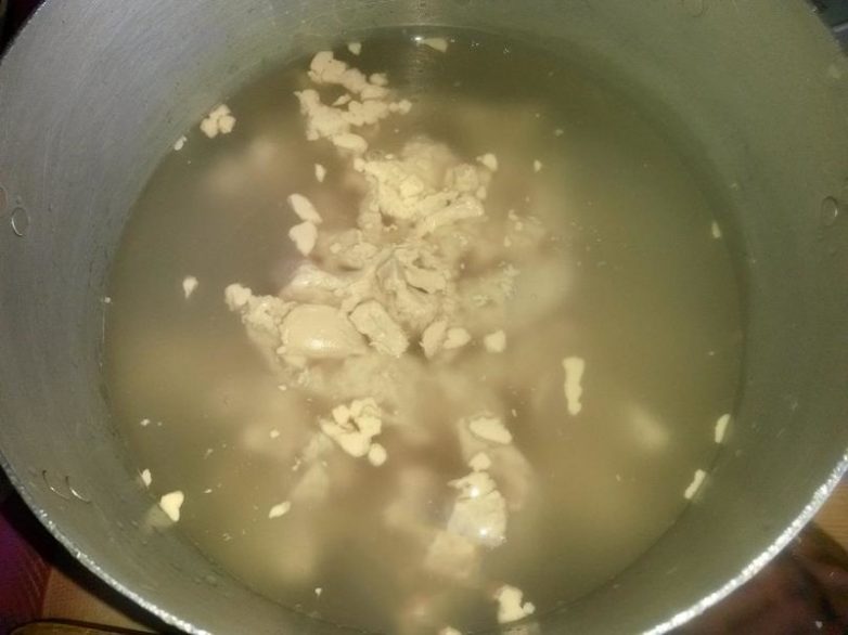 Готовую брагу процеживаем и сливаем в перегонный куб для последующей перегонки.