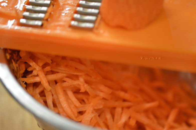 Морковь очистить и натереть на тёрке для корейской моркови.