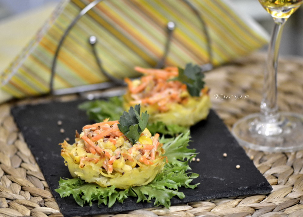 Картофельные тарталетки с пикантным салатом