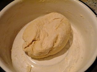 Из муки и воды замесить пресное тесто. Накрыть холодным мокрым полотенцем и оставить в покое.