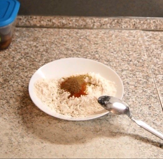 Далее смешиваем 1 стакан муки и наши специи